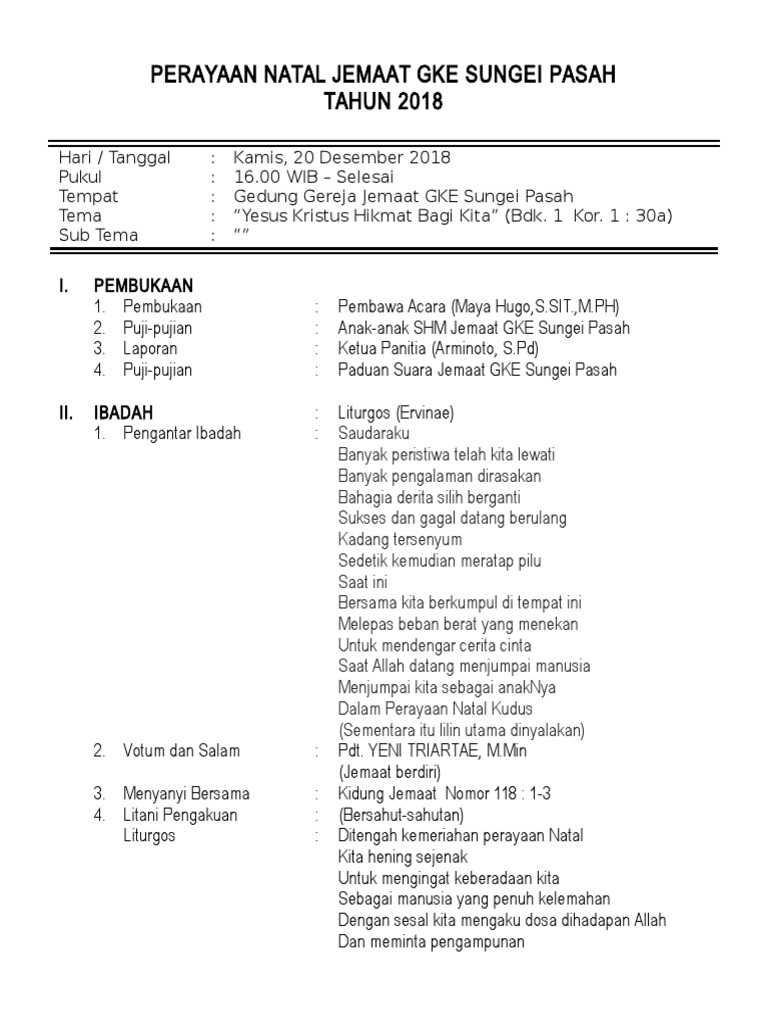 Tata Ibadah Natal Ppgt 2018 Doc Tata Ibadah Natal Ppgt Jemaat Eben Haezer Nunukan Dan Hut Ppgt Ke 56 Jumat 14 Desember 2018 5 Pf 1 Pl Saudara Saudara Course Hero from www.coursehero.com Untuk lebih memudahkan anda, berikut ini kami siapkan contoh liturgi ibadah natal kreatif pemuda yang dapat dijadikan sebagai referensi untuk perayaan tahun ini: Bukan karena rohani saya yang sedang memuncak mas brooo tapi karena saat ini saya akan berusaha membuat hati saya tenang dengan selalu memuji tuhan, inilah salah satu yang saya lakukan dalam setiap kesempatan menulis artikel tentang lagu rohani, sudah. Desain slide dan latar belakang memiliki cukup ruang sehingga anda dapat menempatkan judul ibadah anda dan isi presentasi dalam slide. Menjadi gereja yang memberkati sub tema : Nyatakanlah damai sejahtera kristus terhadap sesama dan lingkungan (bnd. This category contains free powerpoint templates for christmas presentations that you can download and use in microsoft powerpoint 2010 and 2013. Contoh liturgi natal atau tata ibadah perayaan natal lengkap dengan lirik lagu mastimon com. Slide lagu sekolah minggu (powerpoint) kak yudi.
